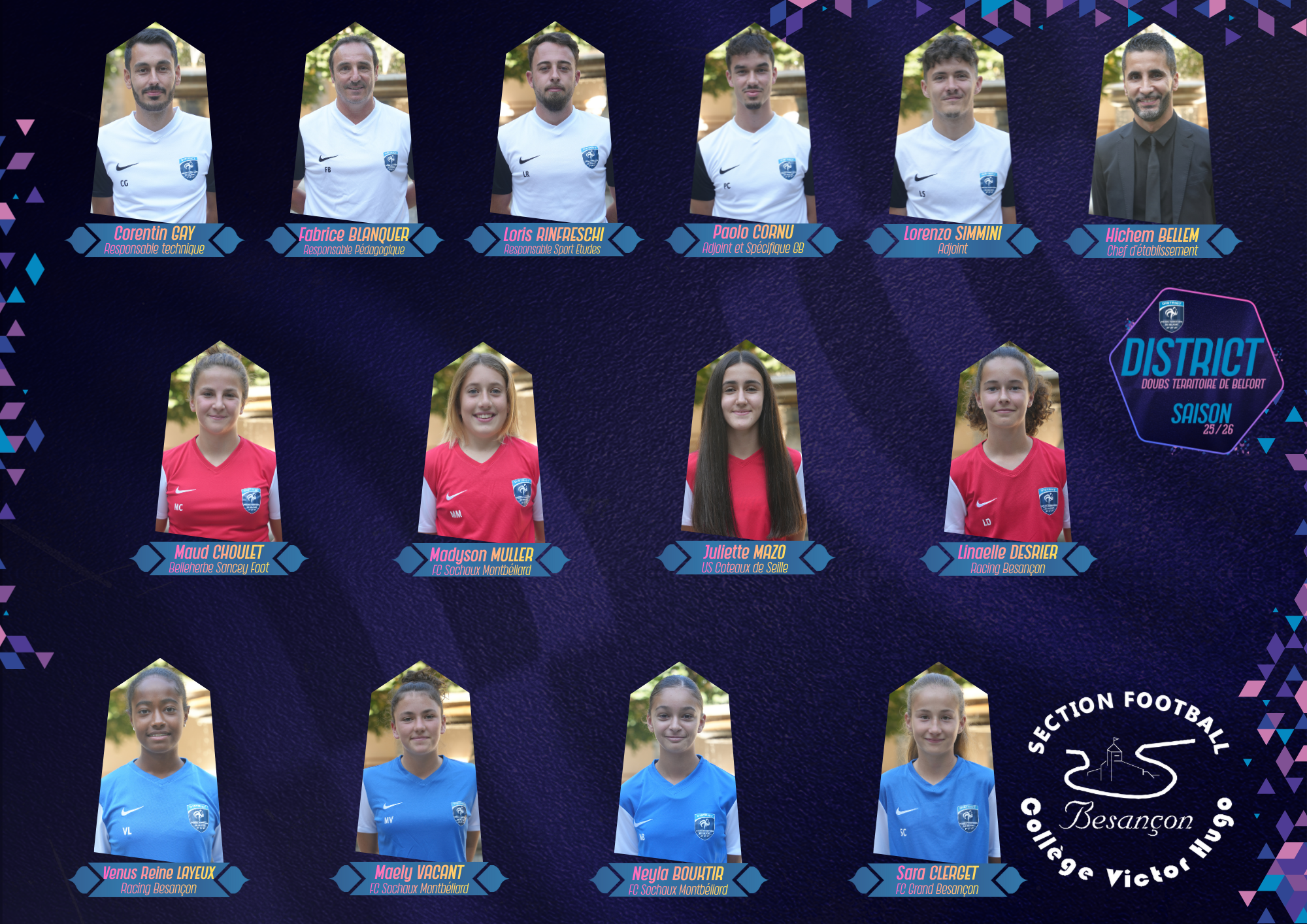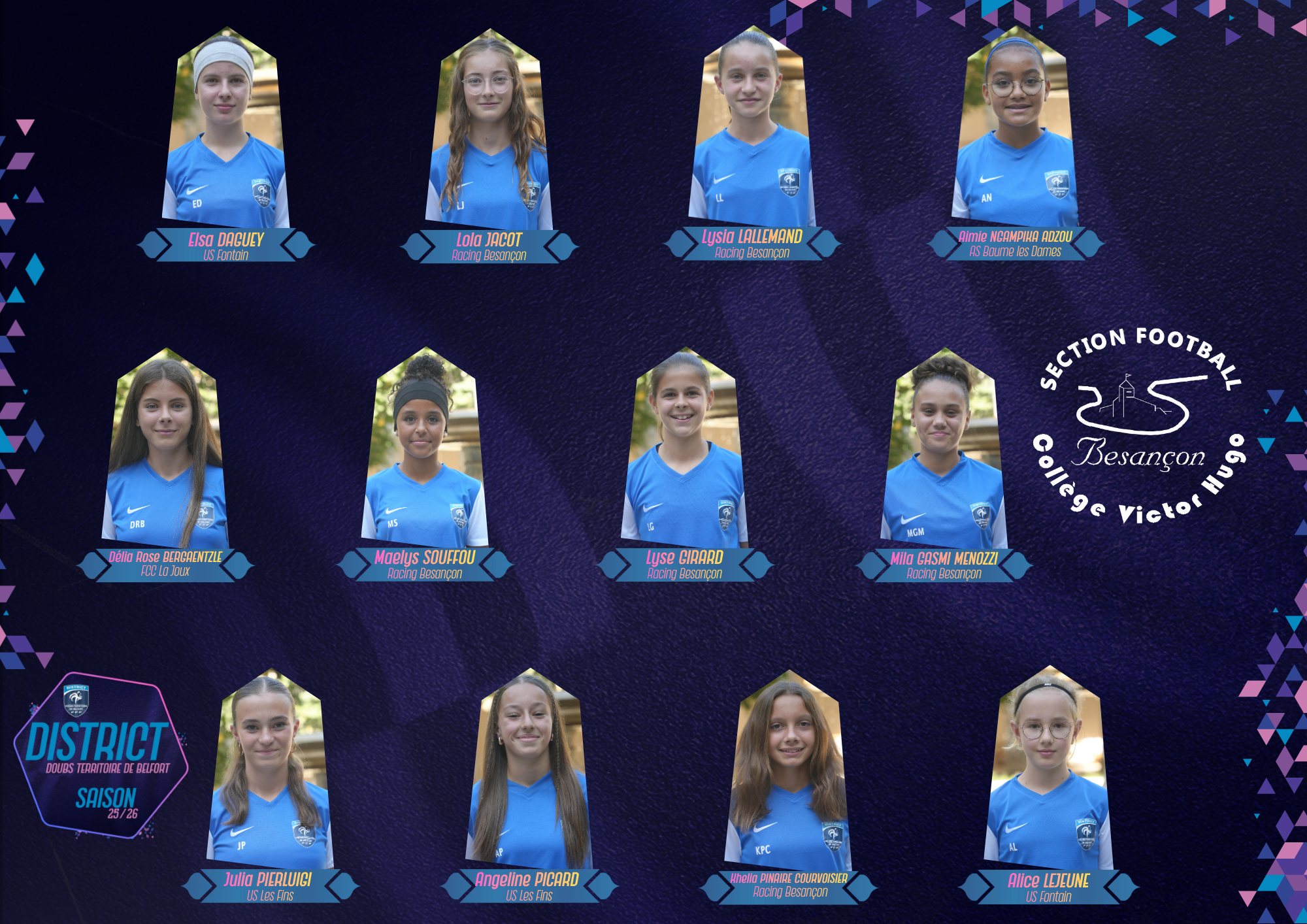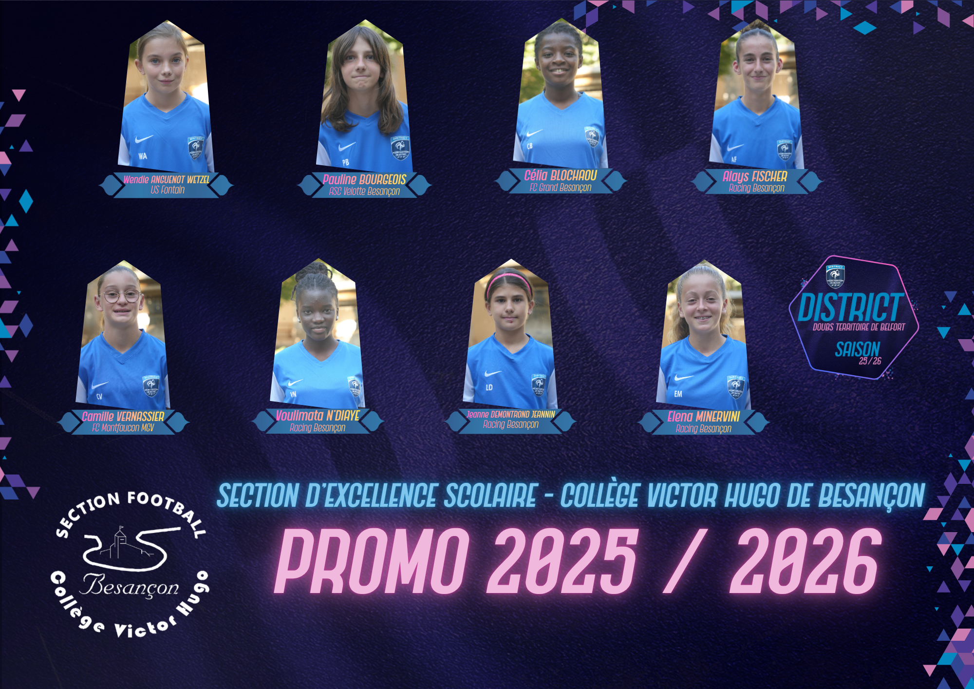 Retrouvez ci-dessous la promotion pour la saison 2025/2026, qui comprend 29 filles (dont 8 internes), pour un total de 11 clubs représentés !