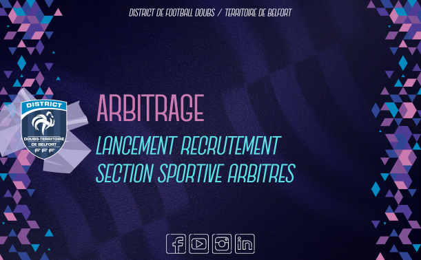 La Ligue Bourgogne-Franche-Comté de Football et notre District de Football Doubs-Territoire de Belfort vous informent que la campagne de recrutement de la Section Sportive à Filière Arbitrage de la région pour la rentrée 2026-2027 est lancée !