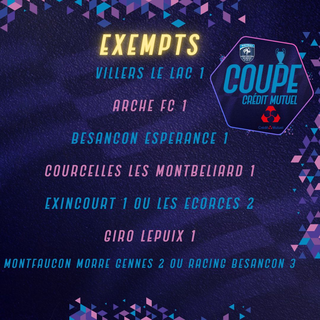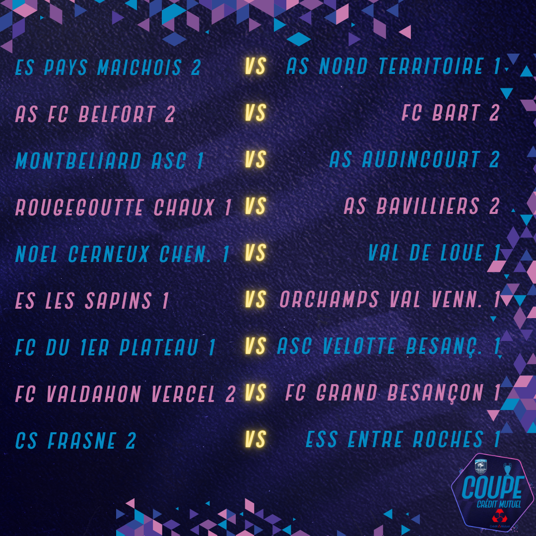 Le District de Football Doubs Territoire de Belfort vous propose de découvrir les affiches de ce 4ème tour de Coupe Crédit Mutuel :