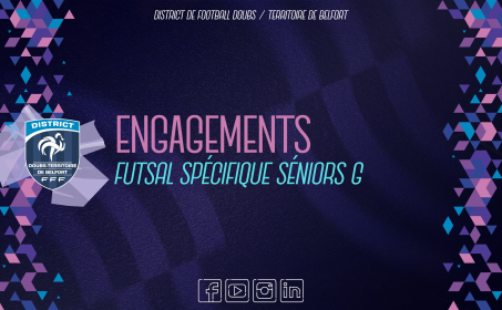 Le District informe l’ensemble des clubs qu’il est toujours possible de s’engager dans le championnat départemental de futsal spécifique SENIORS G pour la phase printemps.