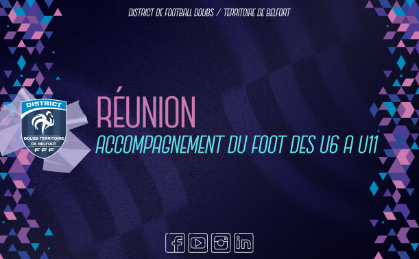 Afin de poursuivre le développement de nos écoles de football (garçons et filles), et accompagner les clubs et les éducateurs à préparer notre Football de demain, le District de Football du Doubs – Territoire de Belfort vous incite à participer à une réunion en visioconférence le :